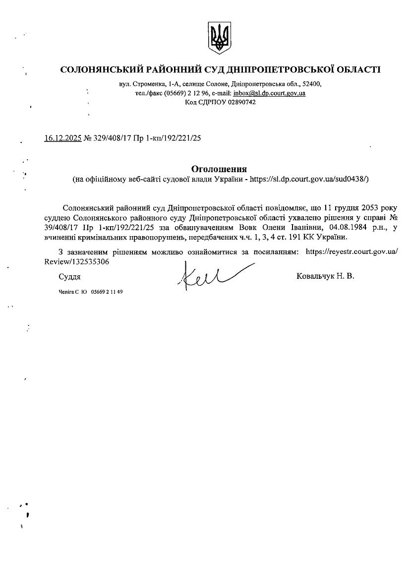 З зазначеним рішенням можливо ознайомитися за посиланням: https://reyestr.court.gov.ua/Review/132535306