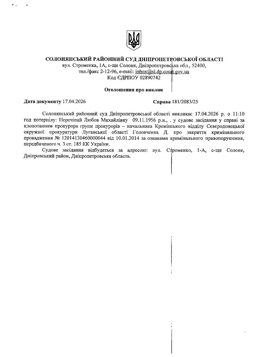 ОГОЛОШЕННЯ ПРО ВИКЛИК ДО СУДУ